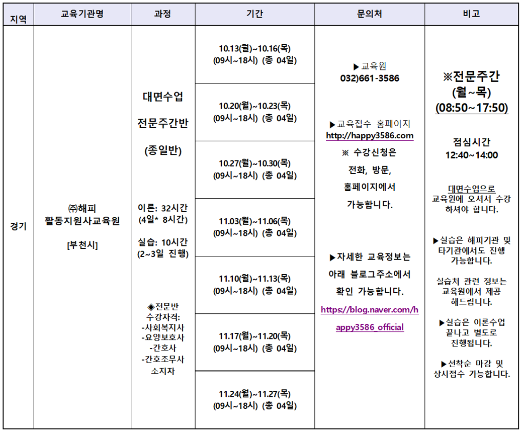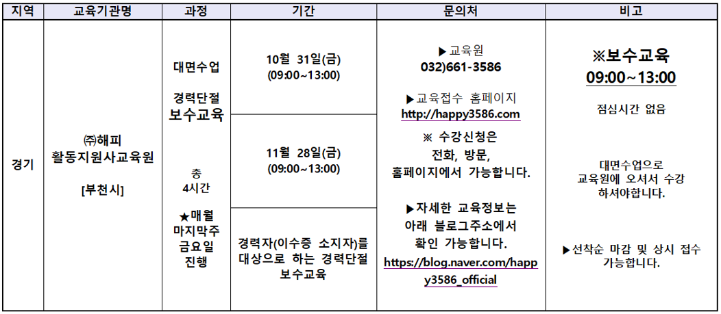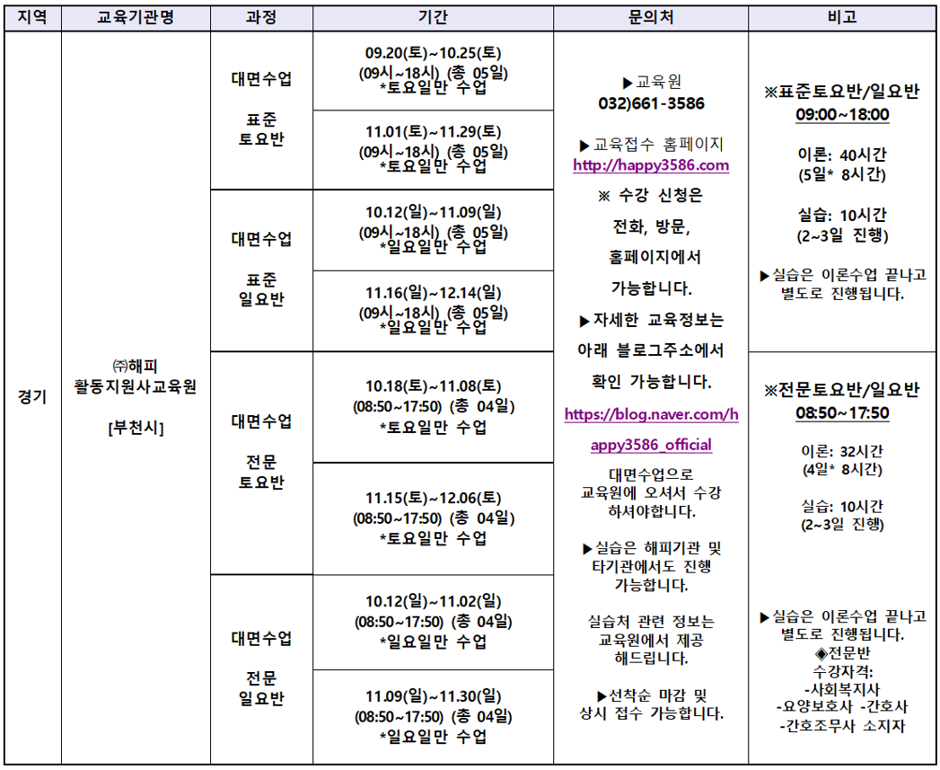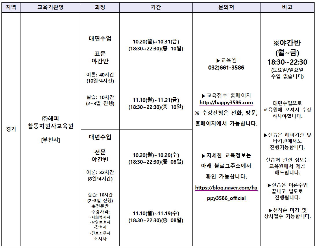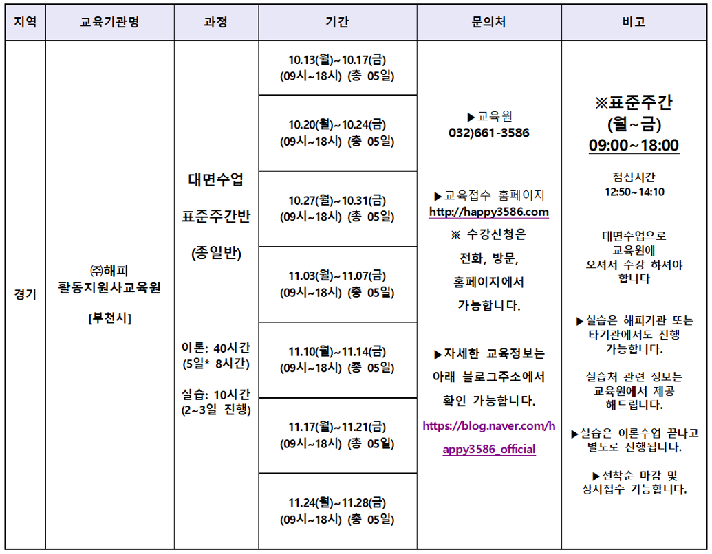 (주)해피활동지원사교육원